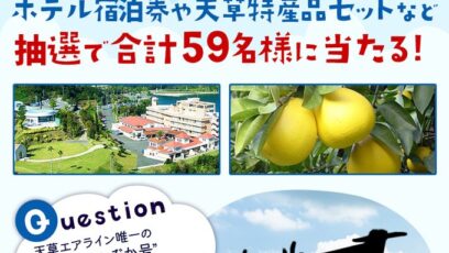 ネット応募の懸賞ホテルペア宿泊券、天草特産品セット、水族館入場券、みぞか号グッズを合計37名様にプレゼント