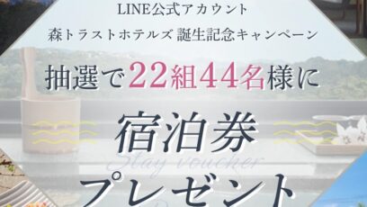 SNS応募の懸賞【LINE懸賞】森トラストグループ宿泊券を22組44名様にプレゼント 締切:2025-10-17 LINE公式アカウント森トラストホテルズ誕生キャンペーン 賞品:森トラストグループ 宿泊券(22組44名様) 締切:2025年10月17日(金) 「森トラストホテルズ...SNS応募の懸賞
