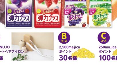ネット応募の懸賞【アプリ】絹女KINUJOストレートヘアアイロン、majicaポイントを合計133名様にプレゼント 締切:2025-11-03 majica‐フルーツのごほうび、果汁グミで手軽に!豪華景品が当たるってマジか!?キャンペーン 賞品: 絹女KINUJOストレートヘアアイロン:3名様 2,500majic...ネット応募の懸賞大量当選(100名~)の懸賞