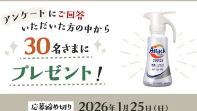 ネット応募の懸賞アタックZEROワンハンドタイプを30名様にプレゼント 締切:2026-01-25 花王 My Kao‐プレゼントキャンペーン 賞品:アタックZEROワンハンドタイプ(30名様) 締切:2026年1月25日(日) ご応募には会員登録/ログインが必要で...ネット応募の懸賞