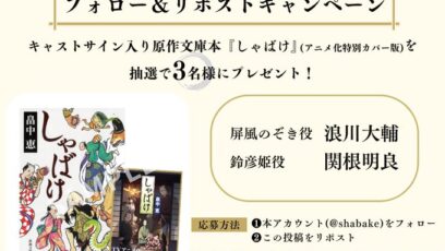 SNS応募の懸賞【X懸賞】サイン入りの原作文庫本「しゃばけ」を3名様にプレゼント 締切:2025-10-16 『しゃばけ』‐フォロー&リポストキャンペーン 賞品:#浪川大輔 #関根明良 サイン入りの原作文庫本「しゃばけ」(3名様) 締切:2025年10月16日(木) 公式X(...SNS応募の懸賞