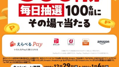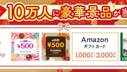 アサヒ飲料から年末年始のご挨拶をしよう!キャンペーン 賞品: 「えらべるPay®20円分」:99,800名様 「サーティワン アイスクリーム 500円ギフト券」:80名様 ...