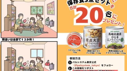 SNS応募の懸賞【X・Instagram懸賞】パルシステム商品(保存食)3点セットを20名様にプレゼント 締切:2026-01-25 生活協同組合 パルシステム東京‐『#備えてパル2026』プレゼントキャンペーン 賞品:パルシステム商品(保存食)3点セット(20名様) 締切:2026年1月25日(日) ...SNS応募の懸賞