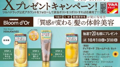 SNS応募の懸賞【X懸賞】ディアボーテ ブルームドール セットを20名様にプレゼント 締切:2025-10-31 ツルハドラッグ‐フォロー&リポストキャンペーン 賞品:ディアボーテ ブルームドール セット(20名様) 締切:2025年10月31日(金) 公式X(Twitter)ア...SNS応募の懸賞
