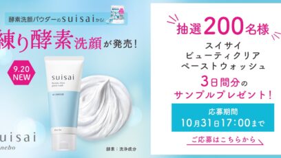 ネット応募の懸賞「スイサイ ビューティクリア ペーストウォッシュ」3日間分サンプルを200名様にプレゼント 締切:2025-10-31 Kao Beauty Brands プレイパーク‐プレゼントキャンペーン 賞品:『スイサイ ビューティクリア ペーストウォッシュ』の3日間分サンプル(200名様) 締切:2...ネット応募の懸賞大量当選(100名~)の懸賞