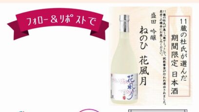 SNS応募の懸賞【X懸賞】日本酒 ねのひ 花風月を3名様にプレゼント 締切:2025-10-07 さかな市場‐フォロー&リポストキャンペーン 賞品:日本酒 ねのひ 花風月(3名様) 締切:2025年10月7日(火) 公式X(Twitter)アカウントをフォロー&キ...SNS応募の懸賞