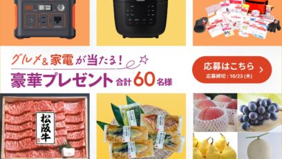 ネット応募の懸賞Jackery ポータブル電源、パナソニック 電気圧力鍋、YAMAZEN 防災バッグ、松阪牛焼肉用、選べる旬のフルーツなどを合計60名様にプレゼント 締切:2025-10-23 Fun! J:COM‐厳選賞品が当たる豪華プレゼント 賞品: Jackery ポータブル電源 400 グレー PTB041 …1名様 パナソニック 電気圧力鍋 ブラック N...ネット応募の懸賞豪華賞品が当たる懸賞