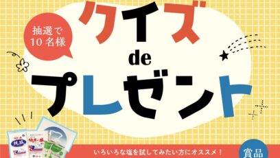 ネット応募の懸賞人気の塩3種セットを10名様にプレゼント 締切:2025-10-31 伯方塩業株式会社‐クイズdeプレゼントキャンペーン 賞品:人気の塩3種セット(10名様) 締切:2025年10月31日(金) 正解者の中から抽選で、10名様に『人気の...ネット応募の懸賞