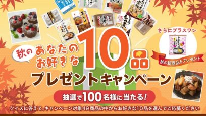 ネット応募の懸賞カンエツ商品10品&秋の新商品「わらびもち風こんにゃく芋みつ」を100名様にプレゼント 締切:2025-10-20 株式会社関越物産‐秋のあなたのお好きな商品10品プレゼントキャンペーン 賞品:カンエツ商品49品の中からあなたのお好きな10品と、秋の新商品「わらびもち風こんにゃく芋みつ」(1...ネット応募の懸賞大量当選(100名~)の懸賞