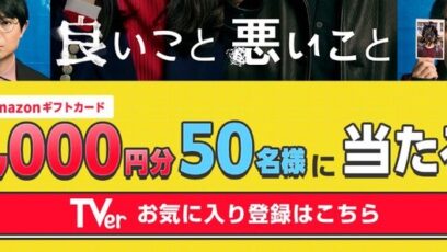 SNS応募の懸賞【X懸賞】Amazonギフト券1,000円分を50名様にプレゼント 締切:2025-10-31 日テレ‐新土曜ドラマ『良いこと悪いこと』放送記念キャンペーン 賞品:Amazonギフト券1,000円分(50名様) 締切:2025年10月31日(金) @nittel...SNS応募の懸賞ギフト券・商品券が当たる懸賞