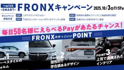 SNS応募の懸賞【毎日・X懸賞】えらべるPay1,000ポイントを毎日50名様にプレゼント 締切:2025-10-09 スズキ株式会社・四輪‐秋のおでかけも with フロンクス その場であたるキャンペーン 賞品:えらべるPay1,000ポイント(350名様) 締切:2025年10月9日(木...SNS応募の懸賞大量当選(100名~)の懸賞ギフト券・商品券が当たる懸賞毎日応募できる懸賞