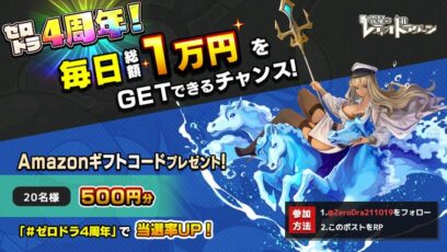 SNS応募の懸賞【毎日・X懸賞】Amazonギフト券500円分を毎日20名様にプレゼント 零星のレディオドラグーン‐祝・ゼロドラ4周年 賞品:Amazonギフト券500円分(毎日20名様) 締切:不明 零星のレディオドラグーン(ゼロドラ)公式X(Twitt...SNS応募の懸賞ギフト券・商品券が当たる懸賞毎日応募できる懸賞