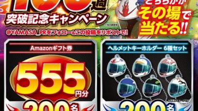 SNS応募の懸賞【毎日・X懸賞】Amazonギフト券555円分、ヘルメットキーホルダー6種セットが合計400名様にその場で当たる!