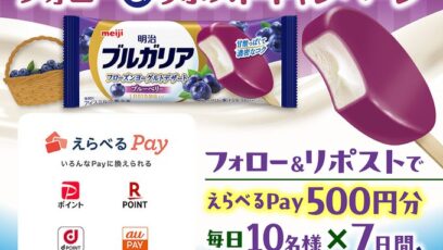 SNS応募の懸賞【毎日・X懸賞】選べるデジタルポイント500円分を毎日10名様にプレゼント 締切:2025-10-05 明治 ブルガリアフローズンヨーグルトデザート ブルーベリー 発売記念キャンペーン 賞品:選べるデジタルポイント500円分(70名様) 締切:2025年10月5日(日) ...SNS応募の懸賞ギフト券・商品券が当たる懸賞毎日応募できる懸賞
