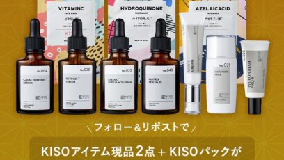 SNS応募の懸賞【X・Instagram懸賞】スキンケアアイテム現品2点+KISOパックのセットを100名様にプレゼント