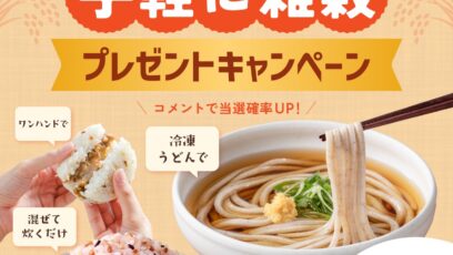 SNS応募の懸賞【X・Instagram懸賞】雑穀うどん、雑穀ライスバーガー、おこめにプラスシリーズ1品、公式オンラインショップで使えるクーポンを合計60名様にプレゼント