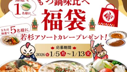 もつ鍋・水炊き 博多若杉‐新春キャンペーン 賞品: もつ鍋味比べ福袋(1名様) 博多若杉アソートカレー(5名様) 締切:2026年1月13日(火) ①博多若杉公...
