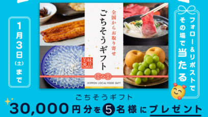 【X懸賞】ごちそうギフト30,000円分、えらべるPay1,000円分を合計105名様にプレゼント