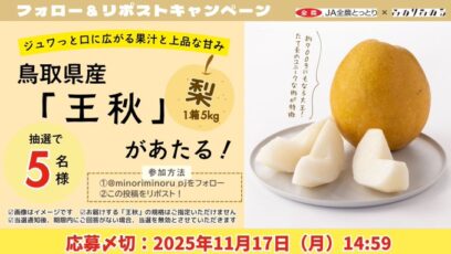 SNS応募の懸賞【X懸賞】鳥取県産梨「王秋」5kgを5名様にプレゼント