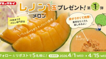 タキイ種苗株式会社(タネのタキイ)‐プレゼントキャンペーン 賞品:熊本県 JA熊本うき産 メロン『レノン』1玉(5名様) 締切:2026年4月15日(水) 公式Xアカ...