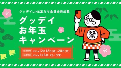 グッデイお年玉キャンペーン 賞品:グッデイ実店舗でのお買い物で使える1,000円クーポン(10,000名様) 締切:2025年12月28日(日) 期間中にグッデイLI...