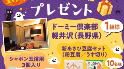 SNS応募の懸賞【LINE懸賞】ウェルカムベビーのお宿「ドーミー倶楽部軽井沢」宿泊券、新あさひ豆腐セット、シャボン玉浴用を合計23名様にプレゼント 締切:2025-10-31 ミキハウス子育て総研‐LINEお友だち限定プレゼント 賞品: ウェルカムベビーのお宿「ドーミー倶楽部軽井沢」宿泊券 1組様 新あさひ豆腐セット(粉豆腐/うす切り) 10名様...SNS応募の懸賞