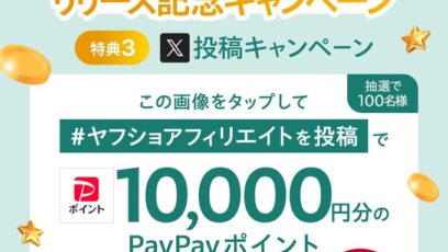 ヤフーショッピングアフィリエイト誕生 リリースX投稿キャンペーン 賞品:10,000円分のPayPayポイント(100名様) 締切:2026年2月28日(土) ① @...
