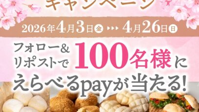 米粉タイムズ‐米粉パンフェスキャンペーン 賞品:えらべるPay 500円分(100名様) 締切:2026年4月26日(日) 公式X(Twitter)アカウントをフォロ...