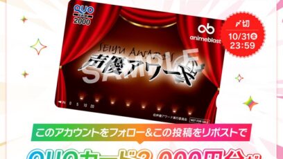 SNS応募の懸賞【X懸賞】QUOカード2,000円分を50名様にプレゼント 締切:2025-10-31 anime blast‐声優アワード MVS 投票開始 記念キャンペーン 賞品:2,000円分のQUOカード(50名様) 締切:2025年10月31日(金) 公式X(...SNS応募の懸賞ギフト券・商品券が当たる懸賞