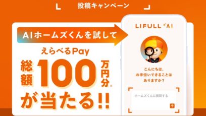 LIFULL‐どこまで探せるの?AIホームズくん投稿キャンペーン 賞品: えらべるPay100,000円分(1名様) えらべるPay10,000円分(10名様) えらべる...