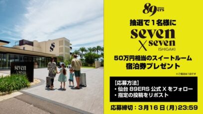 仙台89ERS‐フォロー&リポストキャンペーン 賞品:seven×seven ISHIGAKI The Seven Penthouse 宿泊券(1名様) 締切:2026年3...