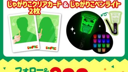 SNS応募の懸賞【毎日・X懸賞】じゃがりこペンライト&じゃがりこ推し活クリアカードが200名様にその場で当たる!