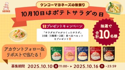 SNS応募の懸賞【X懸賞】『サラダのプロがつくったサラダ』食べ比べセットを10名様にプレゼント 締切:2025-10-16 ケンコーマヨネーズ‐フォロー&リポストキャンペーン 賞品:『サラダのプロがつくったサラダ』食べ比べセット(10名様) 締切:2025年10月16日(木) 公式X(Tw...SNS応募の懸賞