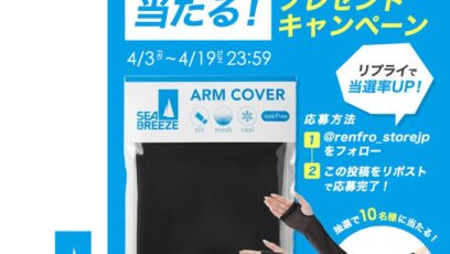 RENFRO‐フォロー&リポストキャンペーン 賞品:アームカバー(ブラック)(10名様) 締切:2026年4月19日(日) 公式X(Twitter)アカウントをフォロ...