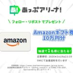 SNS応募の懸賞【毎日・X懸賞】QUOカードPay1,000円分が365名様にその場で当たる! 締切:2026-03-31 レイクのアレ 新CM第3弾公開記念キャンペーン 賞品:QUOカードPay1,000円分(365名様) 締切:2026年3月31日(火) レイク公式Xアカウントをフォロ...SNS応募の懸賞大量当選(100名~)の懸賞ギフト券・商品券が当たる懸賞毎日応募できる懸賞