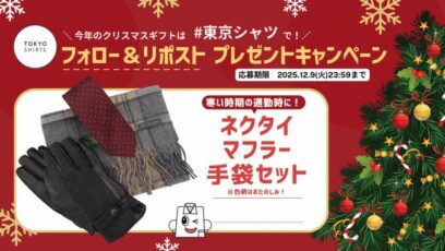 東京シャツ株式会社‐フォロー&リポストキャンペーン 賞品:ネクタイ・マフラー・手袋セット(4名様) 締切:2025年12月9日(火) 公式X(Twitter)アカウン...