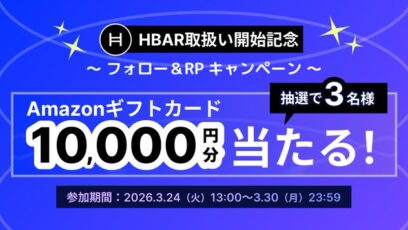 BitTrade‐#HBAR 取扱い開始記念 賞品:Amazonギフトカード10,000円分(3名様) 締切:2026年3月30日(月) 公式X(Twitter)アカ...