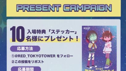 SNS応募の懸賞【X懸賞】入場特典『ステッカー』を10名様にプレゼント 締切:2025-10-19 RED° TOKYO TOWER‐フォロー&リポストキャンペーン 賞品:入場特典『ステッカー』(10名様) 締切:2025年10月19日(日) 公式X(Twitter...SNS応募の懸賞