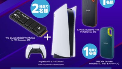 SNS応募の懸賞【X懸賞】WD_BLACK SN850P 4TB、PlayStation 5、SANDISK Extreme PRO Portable SSDなどを合計4名様にプレゼント 締切:2025-10-07 サンディスクストア メルマガ登録キャンペーン 賞品:WD_BLACK SN850P 4TBとPlayStation5をセットにしたものやSANDISK Extreme PRO ...SNS応募の懸賞豪華賞品が当たる懸賞