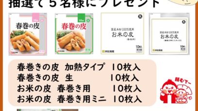 SNS応募の懸賞【X懸賞】手作り春巻セットを5名様にプレゼント 締切:2025-10-31 井辻食産‐フォロー&リポストキャンペーン 賞品:手作り春巻セット(5名様) 締切:2025年10月31日(金) 公式X(Twitter)アカウントをフォロー&キャンペ...SNS応募の懸賞