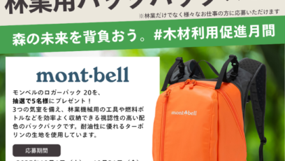 SNS応募の懸賞【X懸賞】モンベルのロガーパック20を5名様にプレゼント 締切:2025-10-31 RINDO(リンドウ)🌳林業専門求人サイト‐木材利用促進月間キャンペーン 賞品:モンベルのロガーパック20(5名様) 締切:2025年10月31日(金) ...SNS応募の懸賞