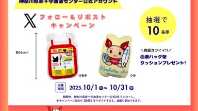 SNS応募の懸賞【X懸賞】オリジナル記念品、血液バッグ型クッションを10名様にプレゼント 締切:2025-10-31 神奈川県赤十字血液センター‐フォロー&リポストキャンペーン 賞品:オリジナル記念品、血液バッグ型クッション(10名様) 締切:2025年10月31日(金) 公式X(T...SNS応募の懸賞