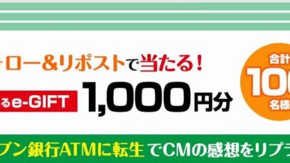 SNS応募の懸賞【X懸賞】選べるe-GIFT 1,000円分を100名様にプレゼント 締切:2025-10-07 セブン銀行 新企業CM公開キャンペーン 賞品:選べるe-GIFT 1,000円分(100名様) 締切:2025年10月7日(火) 公式X(Twitter)アカウントを...SNS応募の懸賞大量当選(100名~)の懸賞ギフト券・商品券が当たる懸賞