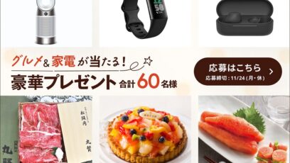 ネット応募の懸賞空気清浄機能付ファンヒーター、フィットネストラッカー、ワイヤレスイヤホン、松阪牛すき焼き用、銀座フルーツタルトなどを合計60名様にプレゼント