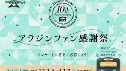 アラジンファン感謝祭 賞品: アラジン グラファイト グリル&トースター 限定カラー(10名様) マグカップ&プレートセット(100名様) エコバッグ(1,000名様) ...