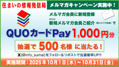住まいの情報発信局‐メルマガキャンペーン 賞品:QUOカードPay 1000円分(500名様) 締切:2025年10月31日(金) 期間中<新たにメルマガ会員に登録い...