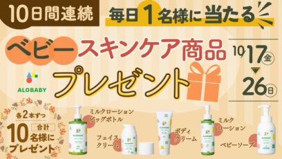 ALOBABY‐プレゼントキャンペーン 賞品:ミルクローションビッグボトル(10名様) 締切:2025年10月26日(日) 応募方法 ① @ALOBABYorgan...