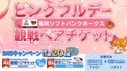 SNS応募の懸賞【X懸賞】福岡ソフトバンクホークス ピンクフルデー2026ペアチケット、ユニフォームを合計15名様にプレゼント