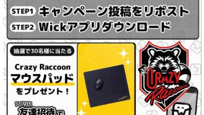 Wick DL + フォロー&リポスト企画 賞品:Crazy Raccoonのマウスパッド(30名様) 締切:2026年3月31日(火) 【参加方法】 ①@Wick...